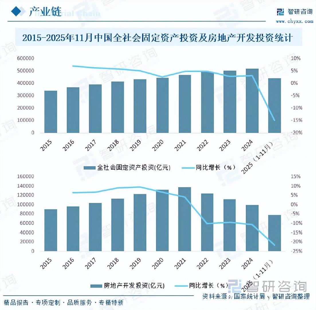 塔机传统核心需求领域为房地产开发和基础设施建设,前者用于住宅、商业综合体等建筑施工,后者则适配高铁、桥梁、城市轨道交通等大型工程,近年来,随着我国经济增速从高速增长转向中速发展,固定资产投资增速也明显放缓,据国家统计局数据显示,2025年1-11月,我国固定资产投资(不含农户)444035亿元,同比下降2.6%,其中,基础设施投资(不含电力、热力、燃气及水生产和供应业)同比下降1.1%;全国房地产开发投资78591亿元,同比下降15.9%,其中,住宅投资60432亿元,下降15.0%,近几年,传统需求领域对塔机需求呈收缩态势,但随着“双碳”目标推进,光伏、风电等新能源项目以及半导体厂房、数据中心等高端工业厂房建设,成为新兴需求场景,催生了定制化塔机的需求,此外,城市更新、“平急两用”公共设施等项目也为塔机市场提供了稳定需求。