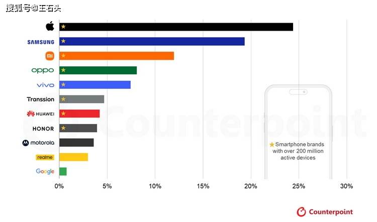 这个数据确实有点恐怖,虽然平时看销量榜单,三星经常和苹果打得有来有回,但用户基数这块,苹果已经把优势转化成了胜势。