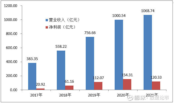 公司的工程机械各大业务板块,在国内外市场份额持续提高,内部降本增效日益显著,2017年至2021年,行业现新一轮上升周期,营收与净利润实现大幅增长,营收从383.3亿元上升至1068.74亿元,净利润从20.92亿元上升至120.33亿元,是国内首家突破百亿元净利润的工程机械公司。
